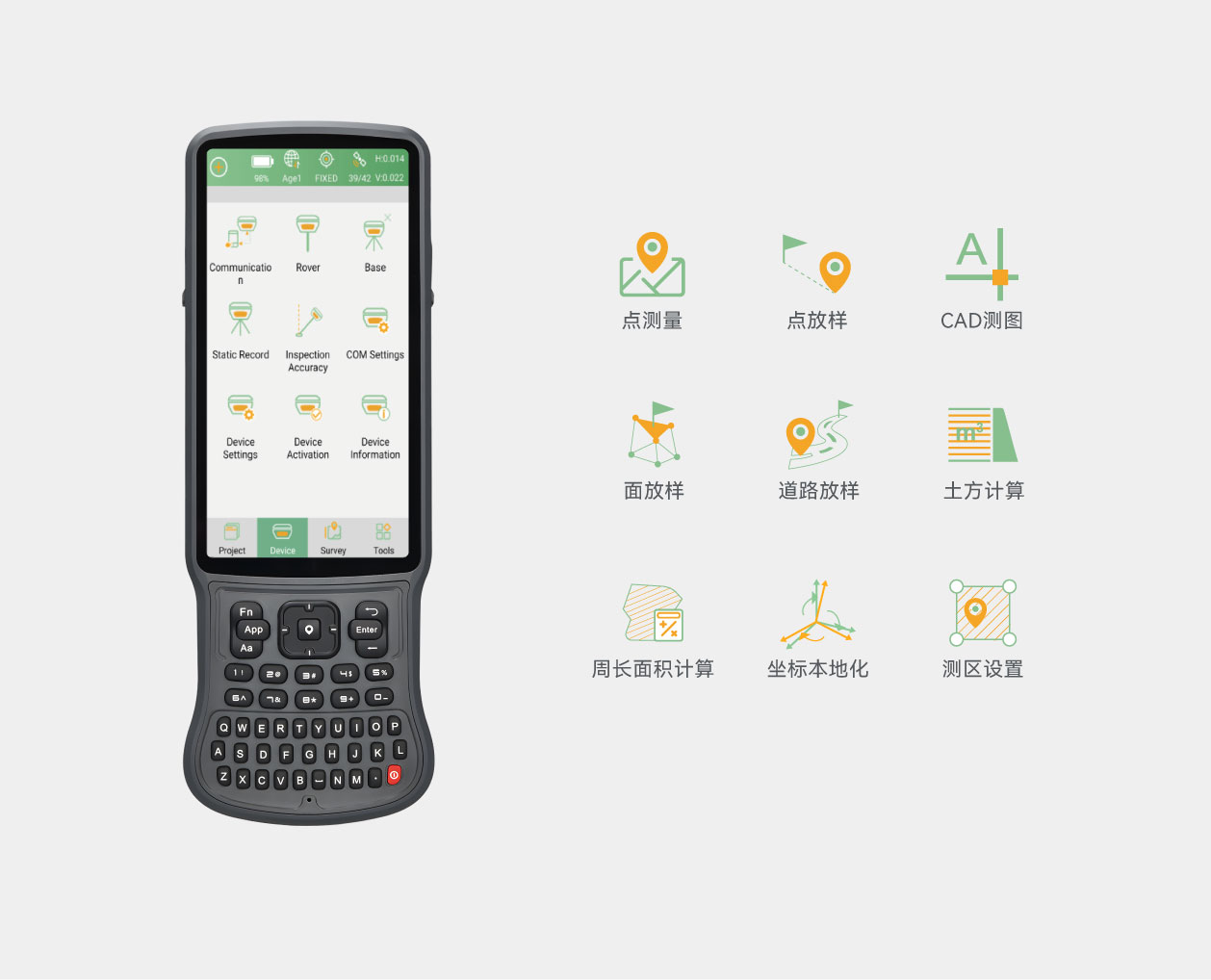 新一代惯导模块加持,E1 可在 5 秒内完成初始化,支持最高60°倾斜测量。一次初始化,作业过程中测量精度始终保持在 ±2.5 cm,省心又高效。
