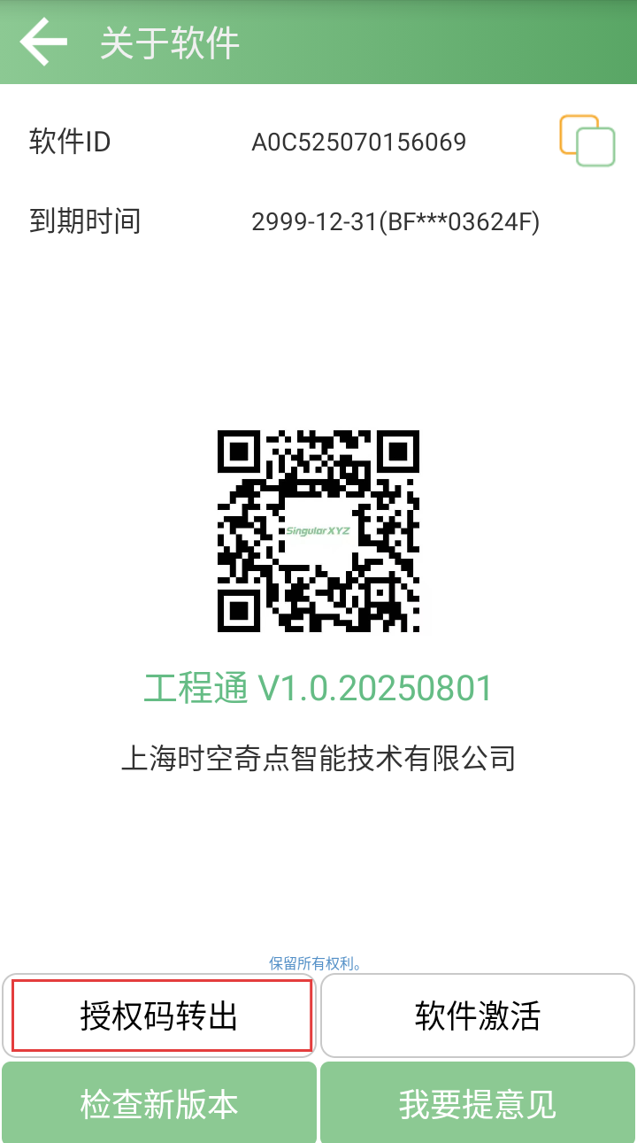 在旧设备上打开工程通,前往“项目”>>“关于软件”,点击“授权码转出”。然后软件将生成一个许可证代码和一个软件许可证的二维码。请务必妥善保存此代码,因为您需要它才能在新设备上激活软件。