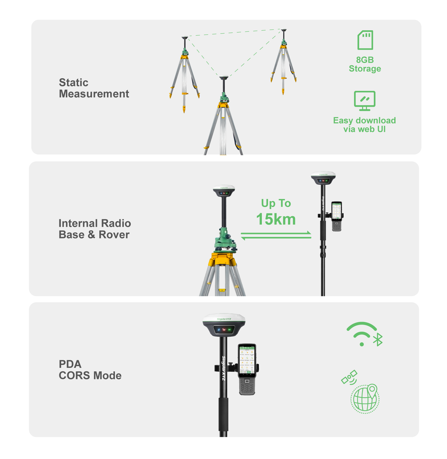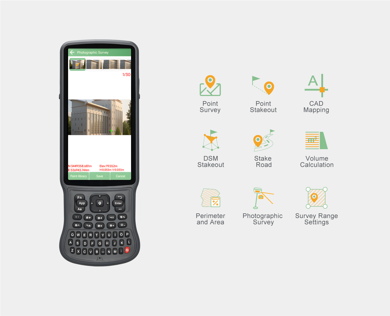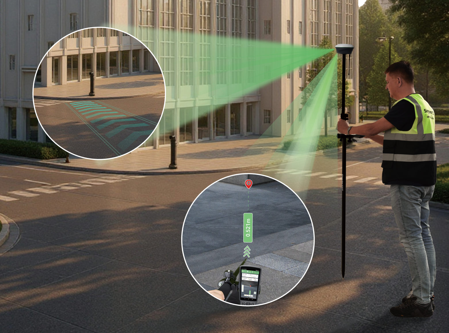 通过双摄像头协同工作,Horus 支持基于距离的自动切换放样模式:远距离点位使用后置相机,近距离引导则切换至底部相机,为每一次放样提供最直观、最精准的 AR 视图。